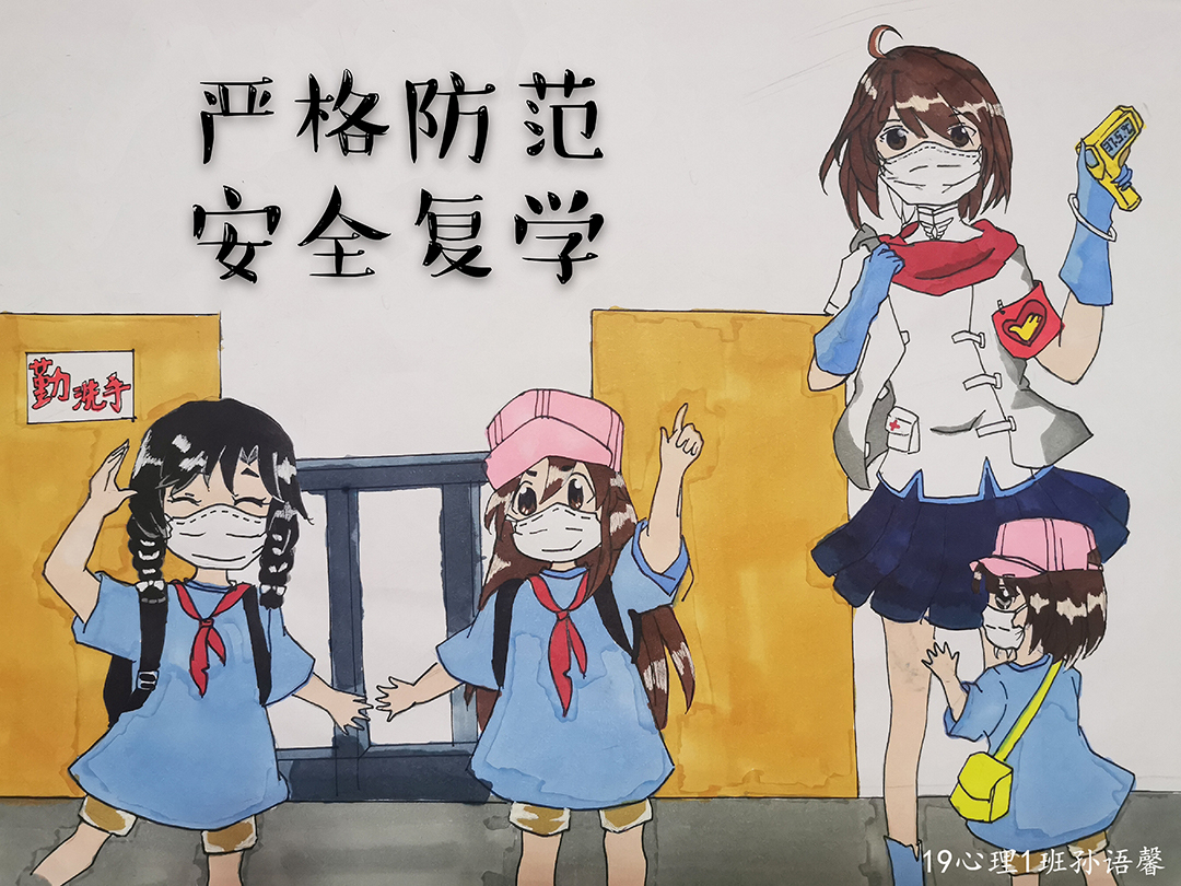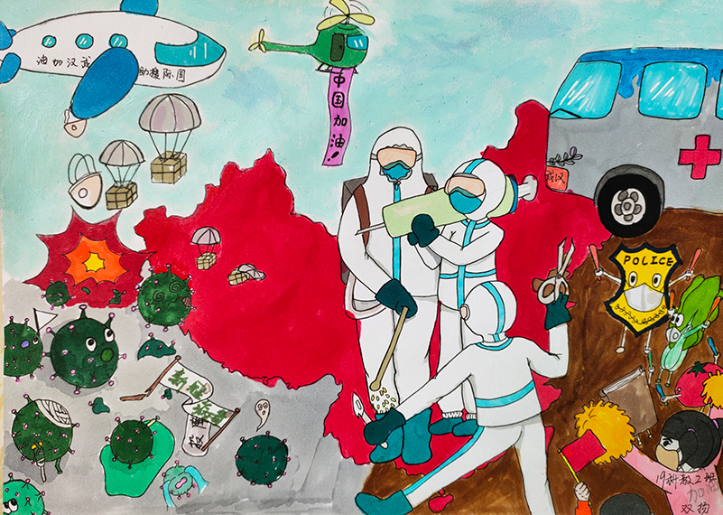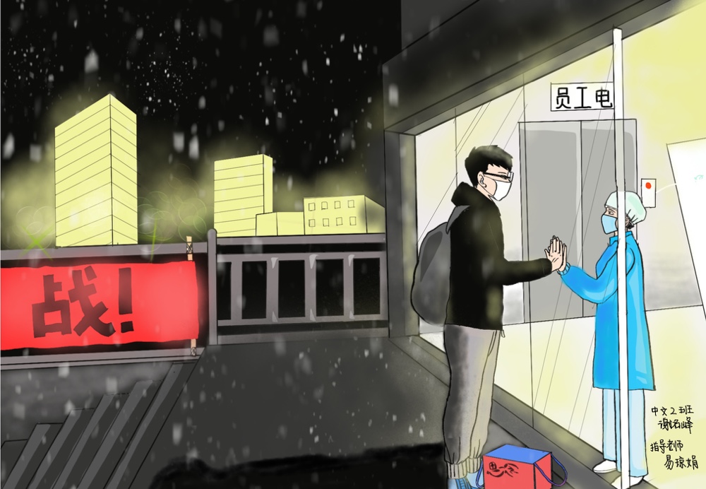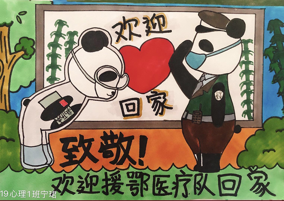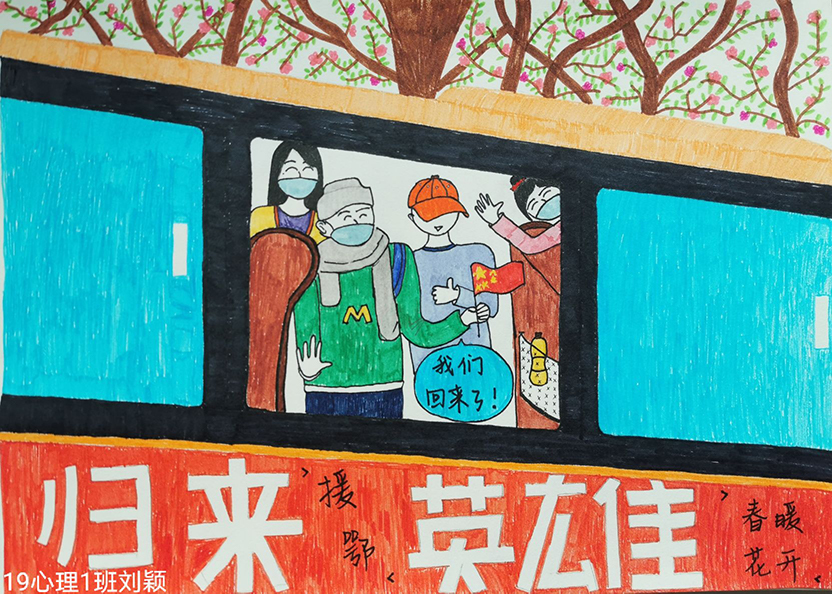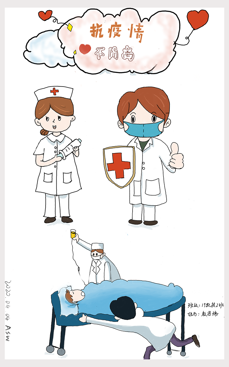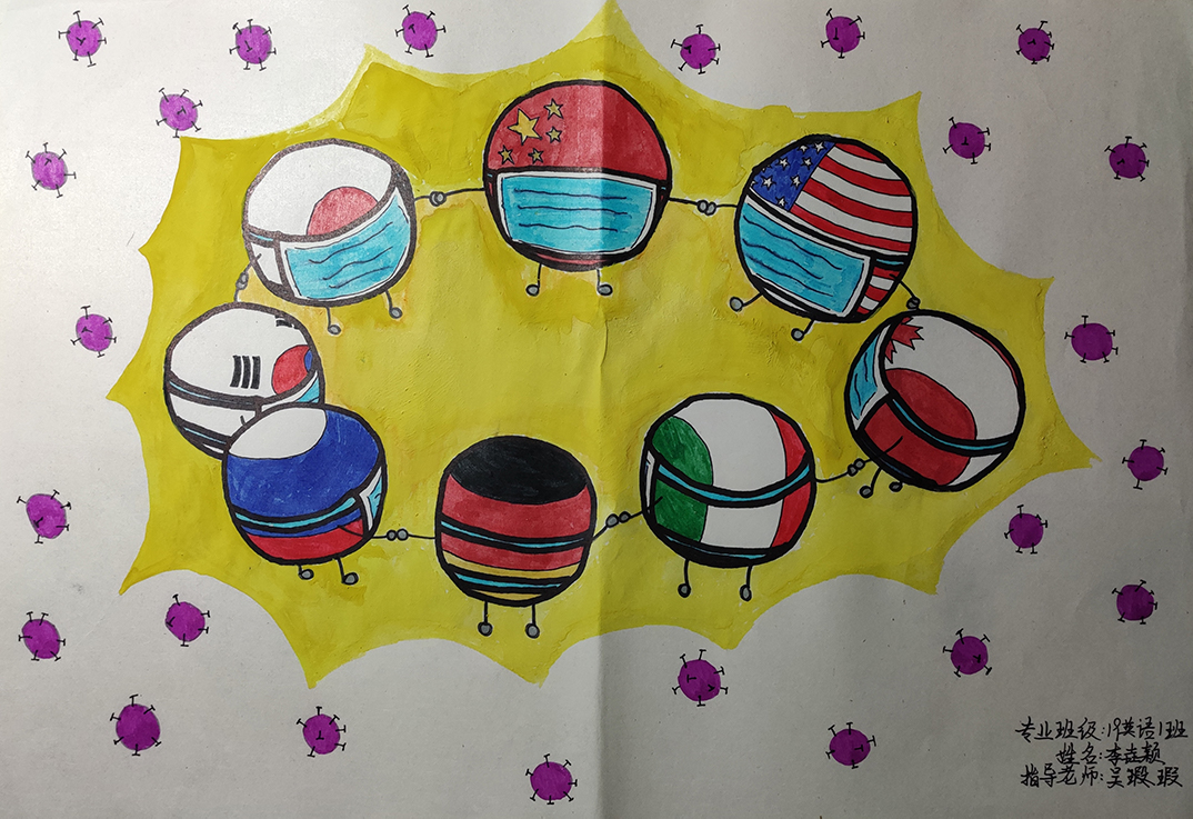 简笔画教学是《美术基础》课程内容中的重要组成部分,教学重点在于加强师范生的简笔画绘画技能,提高美术素养与多元化教学能力,为今后的教学实践打下基础。这次主题创作活动是课程组孙冰、曾素艳、谭媛元、吴瑕、易琼娟五位教师共同探究新时代课堂教学中“课程思政”的一次教学实践。针对抗击疫情期间师生们对抗疫进展与社会现象的关注,结合美术创作“以人民为中心”的指导思想,课程组五位教师通过多次研讨课程内容与授课方式,决定结合慕课平台线上教学进度与课程内容,组织所授班级包括科教、体育、音乐、应数等十个专业926名员工(师范类非美术学专业)共同参与“战疫情·爱不隔离”简笔画主题创作。同学们在掌握简笔画学习与表现规律的同时,将抗疫期间的英雄事迹、感人镜头用画笔展现,将感动之情运用隐喻、借喻、拟人或直抒胸臆等多种手法表现,表达青年的爱国情怀与内心感悟。课程组五位教师在十个班级中选出了75幅优秀作品进行线上展览,呈现出不同学科专业员工们凭借艺术的力量以“艺”抗“疫”。