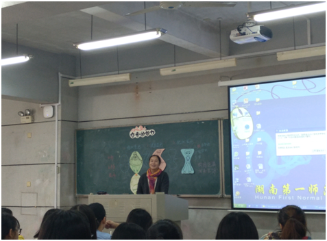 2015级美教702班的钟滢汐、702班的杨田玉、701班的周洁怡、702班的贺春瑞同学分别为大家展示了《变形的魅力》、《书包》、《花格子小牛》、《三个小伙伴》等课程。
