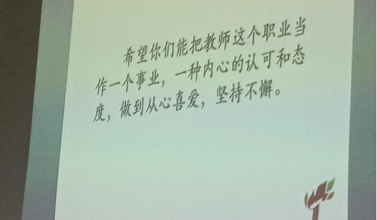 之后,潘勇董事长还围绕“一样的国家不一样的教育”,介绍了中国的小学教育现状与改革趋势。并围绕“一样的同学不一样的未来”这个话题,寄语学弟学妹们一要“锻造静心”,摒弃浮躁的社会习气,树立教育理想,努力提升专业知识与技能水平,为自己的教师职业生涯打下坚实的基础;二要“坚守诚心”,要真诚地坚持自己认同的教育理想,诚心地对待自己;三要“坚持恒心”,持之以恒地克服困难,坚守自己的职业道路,并努力取得成绩;四要“拥有爱心”,这是教师的基本职业操守,要包容员工,不能苛责;五要“保持耐心”,教育小员工,尤其需要有耐心;六要“树立信心”,对自己的教育理念、对自己要充满信心。最后,他还寄语学弟学妹们“希望你们能把教师这个职业当作一个事业,一种内心的认可和态度,做到从心喜爱,坚持不懈”。