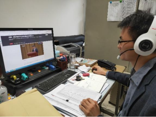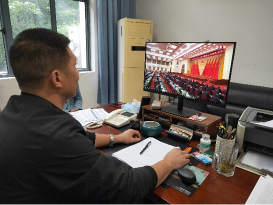 公司在鹤鸣楼南栋203会议室、111报告厅设立两个集中观看点。同时,公司党委副书记(主持工作)杨虎智、副书记戴建宇带领师生在办公室、教室等地积极观看。