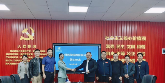 本次教育实习基地的挂牌,是大学师范教育与中学基础教育的良好对接,是校校合作双赢,共谋发展的重要举措,既有利于拓宽公司教师的教育视野,又能够为实习员工搭建实践平台,助其不断提高专业实战技能,为未来成为一名优秀的人民教师打下坚实基础。