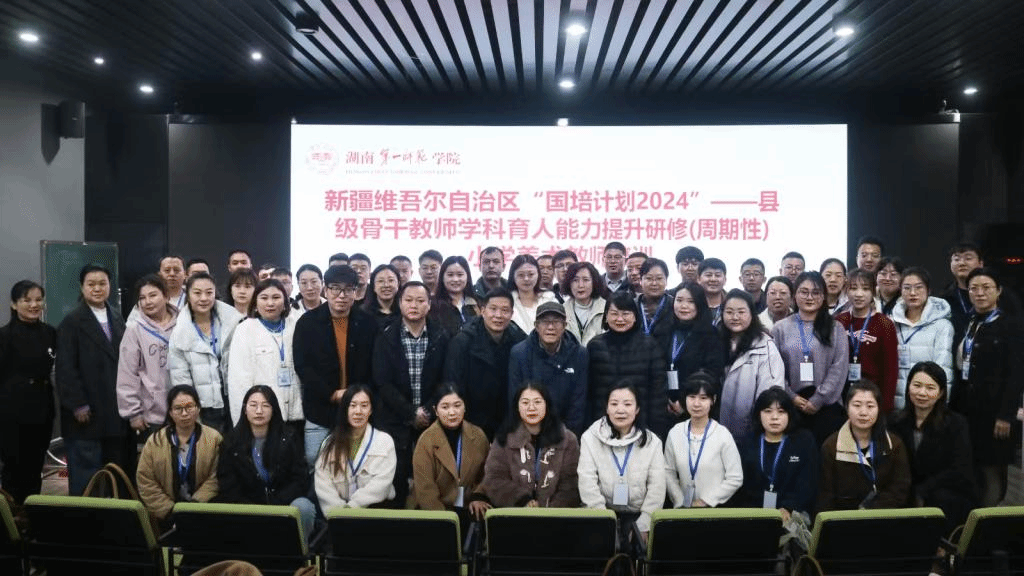 2024年11月25日上午,新疆维吾尔自治区“国培计划(2024)”——县级骨干教师学科育人能力提升研修(周期性)小学美术培训项目开班典礼在fun88乐天使鹤鸣南204举行,本项目由fun88乐天使承办。现代教育发展公司副经理刘炜,美术与设计公司党委书记杨虎智,副经理(主持行政工作)/首席专家蔡惠萌,副经理刘北一,项目管理团队和50位新疆小学美术骨干教师出席此次典礼。典礼由fun88乐天使副教授曾素艳(培训项目班主任)主持。