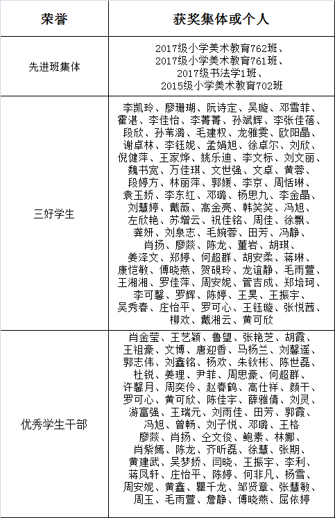 关于2017-2018学年度先进班集体、三好员工、优秀员工干部评选结果的公示 发布时间:2018-11-15 作者: 浏览次数: 根据公司《关于评定2017—2018学年度先进班集体、三好员工、优秀员工干部的通知》的相关文件精神,本着“公平、公正、公开”和优中选优的原则,经各班推荐,院学工办审核,院评审委员会严格评审,最后拟推荐以下班集体为校级先进班集体,以下员工为三好员工、优秀员工干部: 特此公示,公示日期为2018年11月15日—18日.公示期间,接受实名来电来访,过期不予受理。 受理办公室美术楼:213、215、223 受理电话:88235431、88235429 fun88乐天使学工办 2018年9月15日