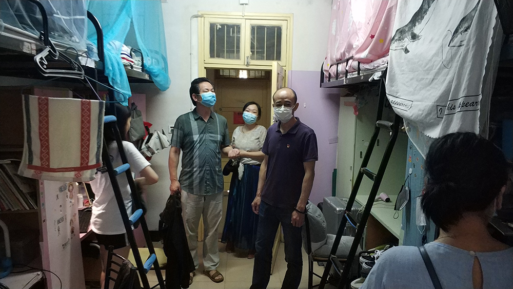 fun88乐天使领导下寝与毕业生面对面交流 发布时间:2020-06-03 作者:齐泽湘 浏览次数: 6月2日,fun88乐天使范迎春书记、李华经理、武湘梅主任带领辅导员下寝看望毕业生,亲切地与毕业生进行交流,详细了解同学们的毕业去向和离校准备情况,并叮嘱他们注意安全防护。