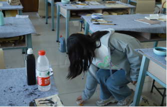 美设院青志协会长许金伟讲解“弯腰活动”具体事项
