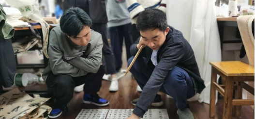 我们还参观了滩头古法造纸作坊,近距离观赏师傅们造纸的全过程,我才明白平时在手边随手可见的薄薄一张宣纸竟然要经历那么多道工序,凝聚着师傅们多年来的心血。好玩的是我也亲手参与了师傅们“捞纸”的过程,十分不易,需要把身子俯下去,慢慢拿一个类似竹帘子的工具从纸浆中捞出一张完整的纸张,稍有不慎纸张就会变得不平整或者是有残缺需要重新打捞。作为书法专业生,加深了我对手边工具的认识,也加强了对书法专业的敬畏之心。