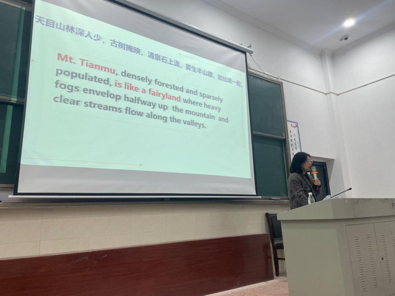 会议在全体师生热烈的掌声中正式开始。第一位主讲人龙君老师向会场内的老师及员工表示问候,言简意赅的对今天的讲座内容进行概括,简单介绍了四级考试各题型构成及分值、考试流程、听力理解题目构成、评分标准,并详细讲解了听力答题技巧、篇章翻译解题技巧。龙君老师的精彩演讲结束,同学们进行了五分钟的休整,又由晏小花老师继续分享四级考试的另外两个板块。她简要提及作文题目类型与考核点、阅读分值,以及深刻剖析了作文考试答题技巧、阅读分析做题技巧。讲座的最后,以同学们热烈的掌声作为结尾。