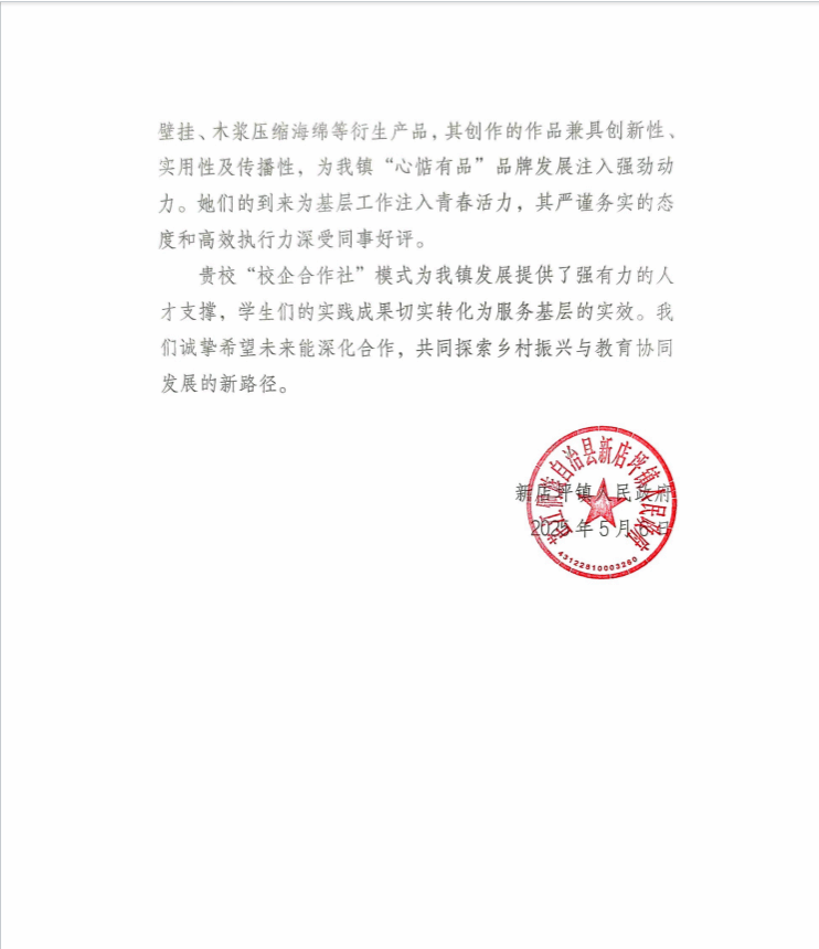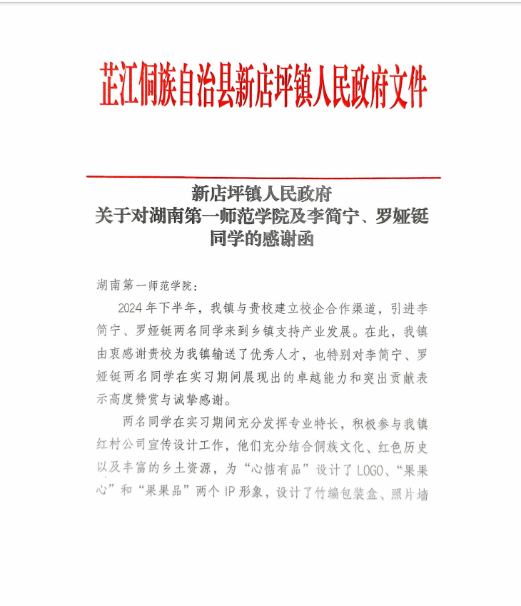 新店坪镇人民政府关于对fun88乐天使及李简宁、罗娅铤同学的感谢函