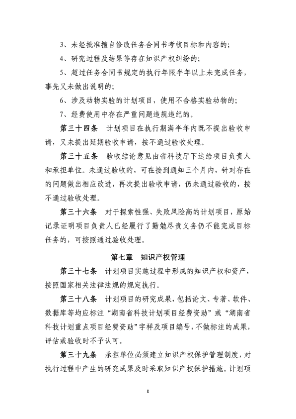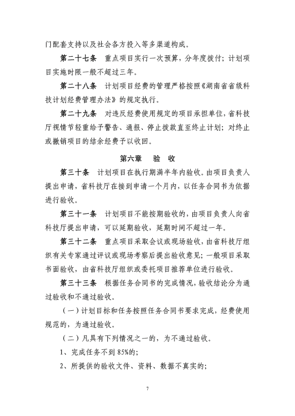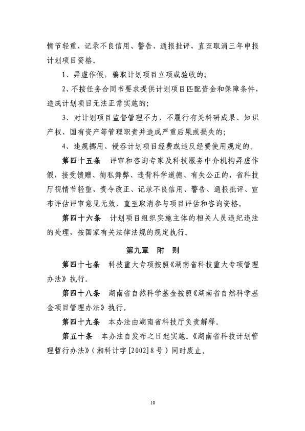 第四十六条本办法自公布之日起30日后实施,2006年公布的《湖南省自然科学基金项目管理规定》、《湖南省杰出青年基金管理办法》、《湖南省自然科学基金面上项目管理办法》、《湖南省自然科学基金联合基金项目管理办法》等同时废止。