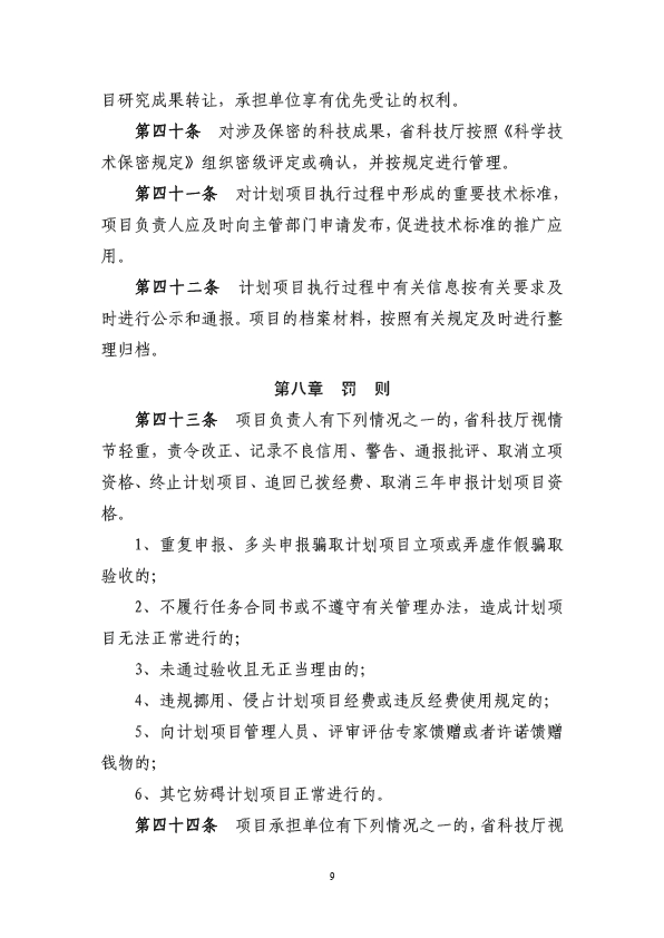 第九条 省科学技术厅负责编制省级软科学研究计划,会同省直有关部门,有关市、州科技行政管理部门共同组织实施;省科学技术厅软科学研究计划归口管理部门为政策法规与体制改革处。