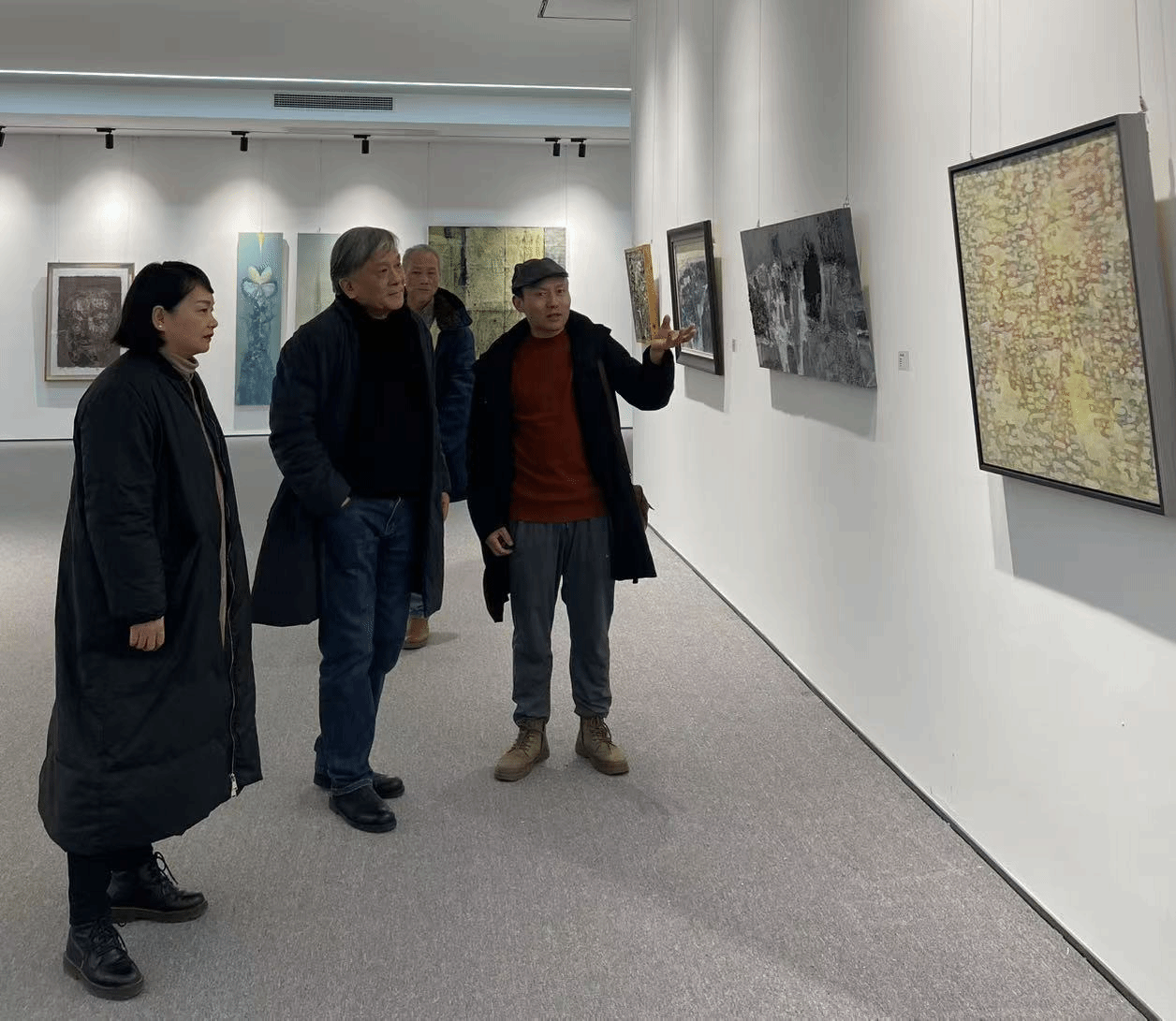 2025年1月12日,公司教授、博士生导师、中国美术家协会综合材料绘画与美术作品保存修复艺委会原副主任杨劲松,湖南美术出版社原副社长、湖南美术家协会原副主席、云冈艺术研究院艺术顾问邹建平等一行来fun88乐天使美术馆参观交流。fun88乐天使经理蔡惠萌对杨劲松一行表示欢迎并陪同参观“2024·长沙首届综合材料绘画作品展”。本次展览旨在凝聚时代精神,诠释湖湘文化艺术魅力,促进湖南当代综合材料绘画的繁荣发展。杨劲松对公司的热情接待表示感谢,他认真欣赏了每一幅作品,不时驻足交流。杨劲松对公司主办的这次展览活动给予了高度评价,展览体现了综合材料绘画的多样性和创新性,并对fun88乐天使的教学和创作成果给予肯定;邹建平也表示希望将来可以加强交流与合作,为公司的繁荣和发展提供更多的资源。双方人员还就综合材料绘画的教学、创作研究等工作进行了深入交流。