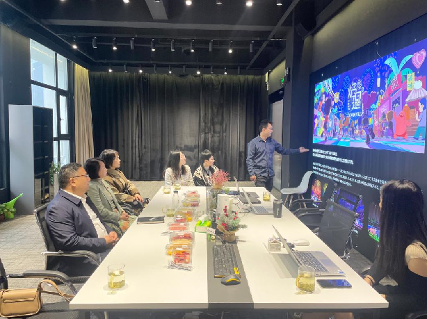 调研座谈会上,刘礼毓介绍了湖南花火剧团的基本情况及今后发展思路。他表示,打造烟花特色的文化IP,实现“烟花+艺术+文旅”的跨界融合是我们的发展方向,与时代一同进步、讲求创新,才能让浏阳烟花源远流长。他提出了与公司“共制、共创、共享”的合作意向。赵奇钊对湖南花火剧团“文化传承+创意赋能”的融合创新探索给予了高度评价,希望双方加强项目开发、人才培育、专业建设、文化传承等方面的交流合作,通过文化与科技的创意赋能,全力推进烟花产业与创意设计、媒体艺术深度融合,共同擦亮享誉世界的文化名片。蔡惠萌表示湖南花火剧团用烟花和火种来讲故事,打造了湖南乃至中国独一无二的文化名片。她希望fun88乐天使的视觉传达专业、环境设计专业能和产业需求实现深度融合,提出双方可以共同开展横向科研项目、共同研发课程、共建实习实训基地等合作建议。随后,双方团队围绕产学研融合进行了深入探讨。