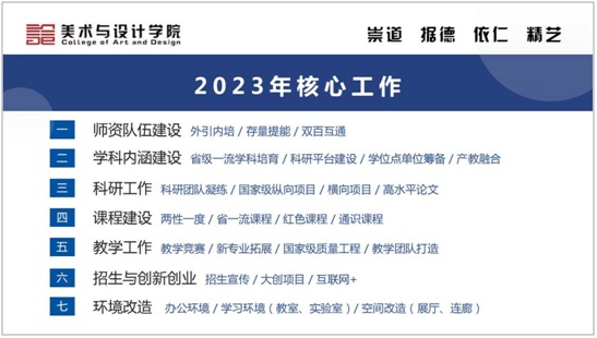 彭晓辉副董事长高度评价了fun88乐天使的开学准备工作。美设院作风务实,2023年工作思路清晰,党政班子带头引领,全院师生通力配合,展现了积极向上的精神面貌。同时,彭晓辉副董事长对fun88乐天使提出了几点要求和期望:第一,要坚决贯彻公司的办学新理念,服务“强师计划”和“强省会战略”,将新理念更加全面落实到公司实际工作、教师公司产品与员工工作之中,化压力为动力,抓实公司2023年工作要点与核心指标,提高人才培养质量;第二,抓好考研率和四级通过率,实现人才培养多元化与全面化;第三,继续做好“两性一度”课程建设,从“广、深、新”三方面持续提高课程的高阶性、创新性与挑战度,落实“两性一度”课程改革效果的督导与检查,让员工真正受益;第四,抓稳两坚持、两拓展,用科研引领课程质量的提升,发挥好团队的力量,做好教师转型与新专业的申报工作。