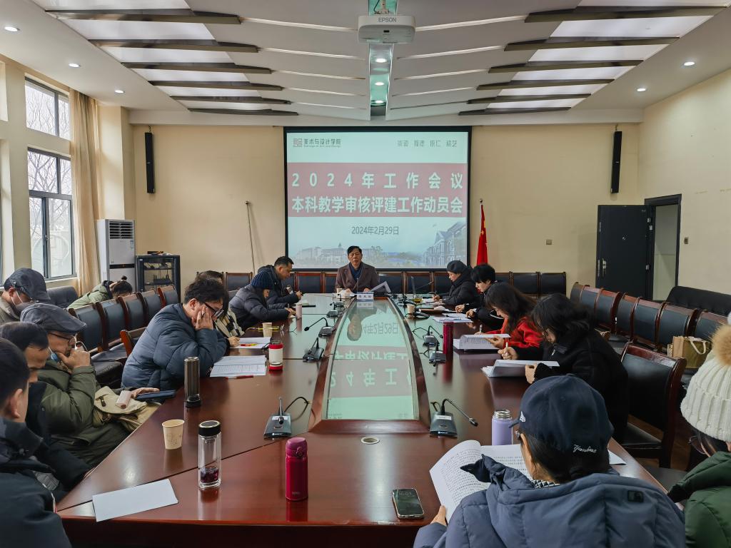 2024年2月29日下午,fun88乐天使在鹤鸣南203召开本科教学审核评建工作动员会,会议由副经理(主持行政工作)蔡惠萌主持,公司党委副书记李克勤深入美设院指导工作,美设院全体教师参会。