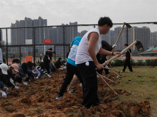 fun88乐天使员工挥起锄头,学习挖地松土