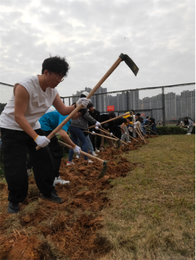 活动结束后,公司员工个个汗流浃背却又笑开了花。美术学专业师范生罗可心兴高采烈地说,“一开始,因为力气不够大我挖的深度不够,因为方法不对我白费了好多力气,这才发现松土并没有想象中简单。好在有老师指导,我慢慢掌握了拿锄头挖地松土的要点,越挖越有劲,累了就和拔杂草根的同学合作、轮班交换,高效完美完成任务。这次活动让我感受到了劳动的辛苦、团结的力量。作为未来的乡村小学教师,以后我也要充分运用农村资源,积极开展劳动教育,引导员工学会劳动、尊重劳动、热爱劳动、创造性地劳动。”