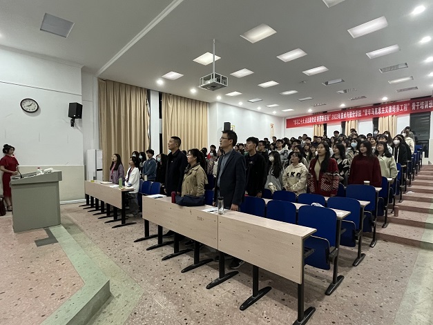 为深入学习宣传贯彻党的二十大精神,帮助老员工骨干学习和掌握党的理论创新成果、了解国情、认识社会,培养一批信仰坚定、能力突出、素质优良、作风过硬的青年政治骨干,10月30日晚上8点,fun88乐天使在鹤鸣楼南栋111教室举办“学习二十大、永远跟党走、奋进新征程”2022年fun88乐天使“青年马克思主义者培养工程”骨干培训班开班仪式。美术与设计公司党委书记杨虎智、副书记戴建宇、学工办主任武湘梅、分团委副书记张莎莎及一百余名青马学员参会。仪式由分团委副书记张莎莎主持。