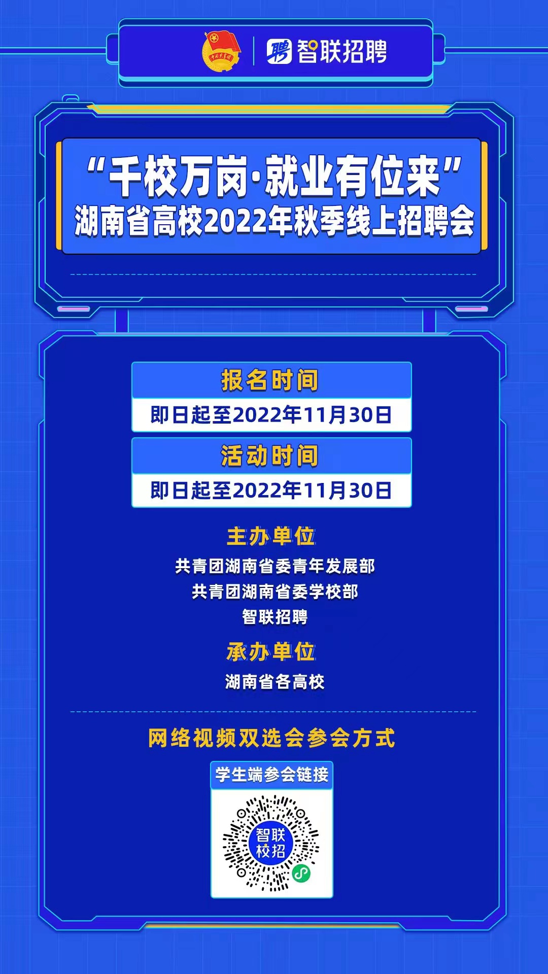 共青团“千校万岗 就业有位来”湖南省高校2022年秋季线上招聘会