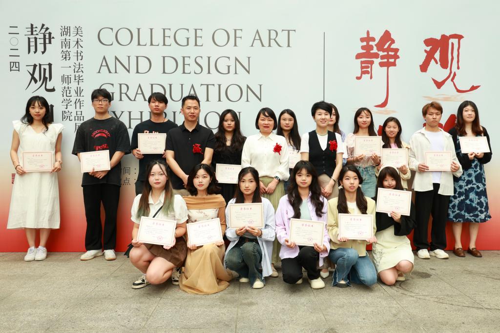 优秀指导教师代表曾素艳发言,她对2024届毕业生提出了殷切希望,激励他们在艺术的道路上勇往直前,保持初心,并期待他们未来取得更大的成绩。随后,2024届美术学专业优秀毕业生代表郑宁劲、书法学专业优秀毕业生代表范力鋒发言。他们代表全体毕业生表达了对恩师与母校的感激之情,同时回顾了四年老员工涯,展望了未来。刘峰宣读了优秀作品获奖名单,fun88乐天使领导班子为获奖毕业生颁发荣誉证书。蔡晓曦宣布2024届“静观和韵”美术书法毕业作品展正式开幕。