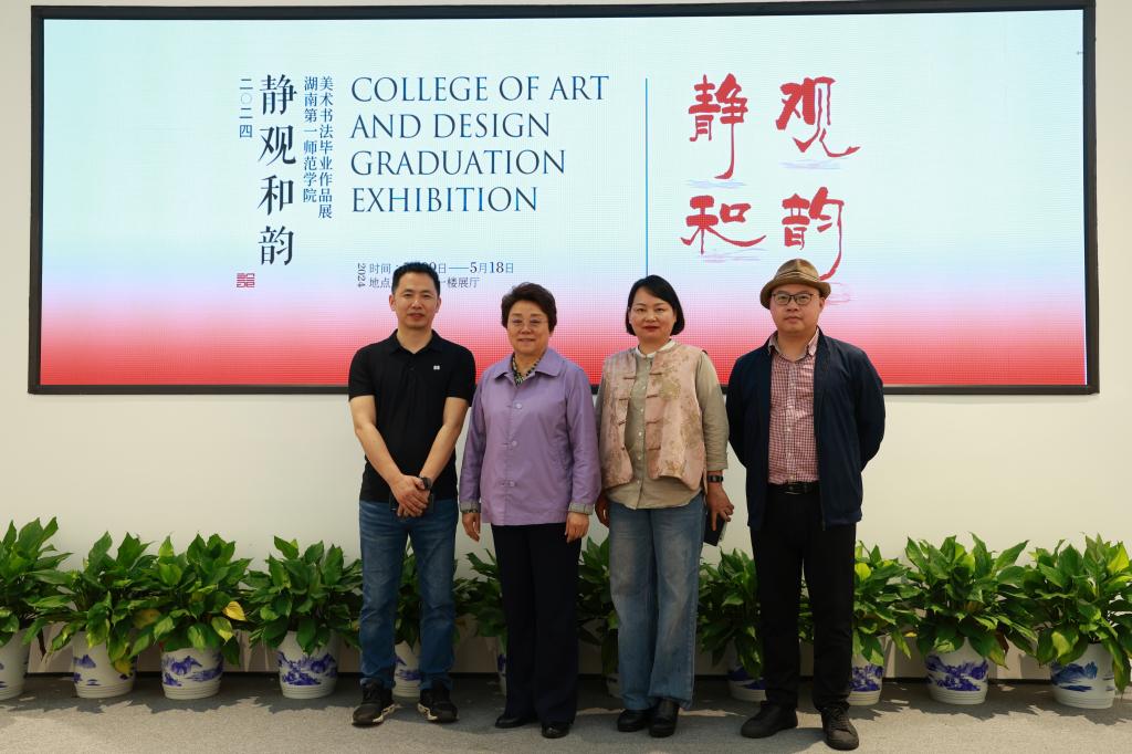 2024年5月9日上午,fun88乐天使美术学系与书法学系2024届毕业生以“静观和韵”为主题的毕业作品展在东方红校区鹤鸣楼南栋一楼展厅开幕。fun88乐天使蔡惠萌副经理(主持工作)、刘峰副书记、蔡晓曦副经理、美术学系孙冰主任、李楚智副主任,以及美术学系和书法学系师生出席本次活动,开幕式由书法学系王振凯副主任主持。