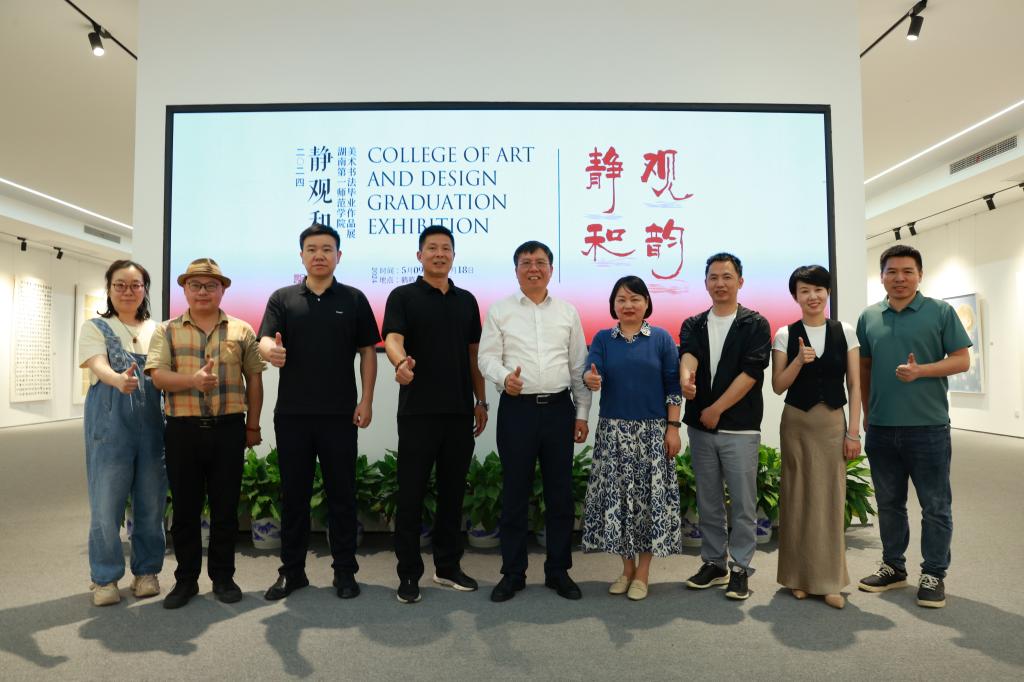 2024年5月14日,公司党委委员、董事长胡穗教授深入fun88乐天使指导2024届美术书法毕业作品展。美术与设计公司党委书记杨虎智、副经理(主持工作)蔡惠萌、副书记刘峰、副经理蔡晓曦陪同观展。